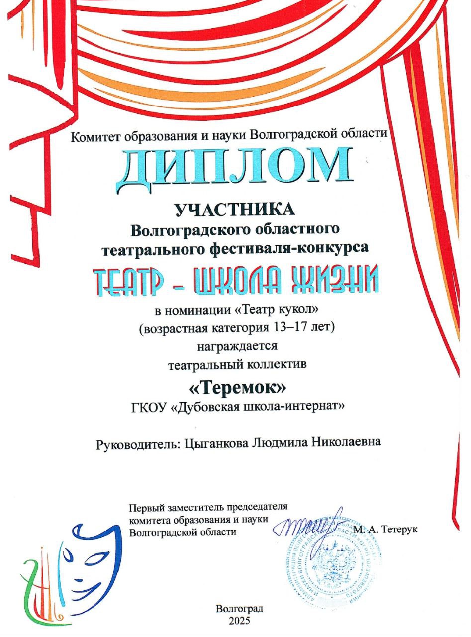 Приказ о создании школьного кукольного театра для учащихся 1-4классов "Теремок"