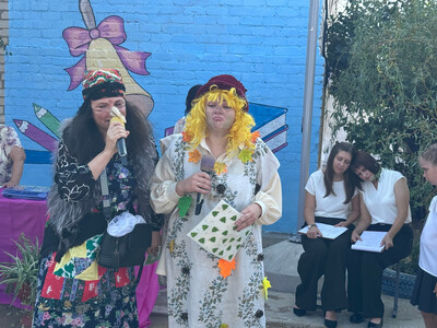 Чтобы праздник стал веселее, к школьникам заглянули любимые сказочные герои: озорная Баба-Яга и добрый Домовой.