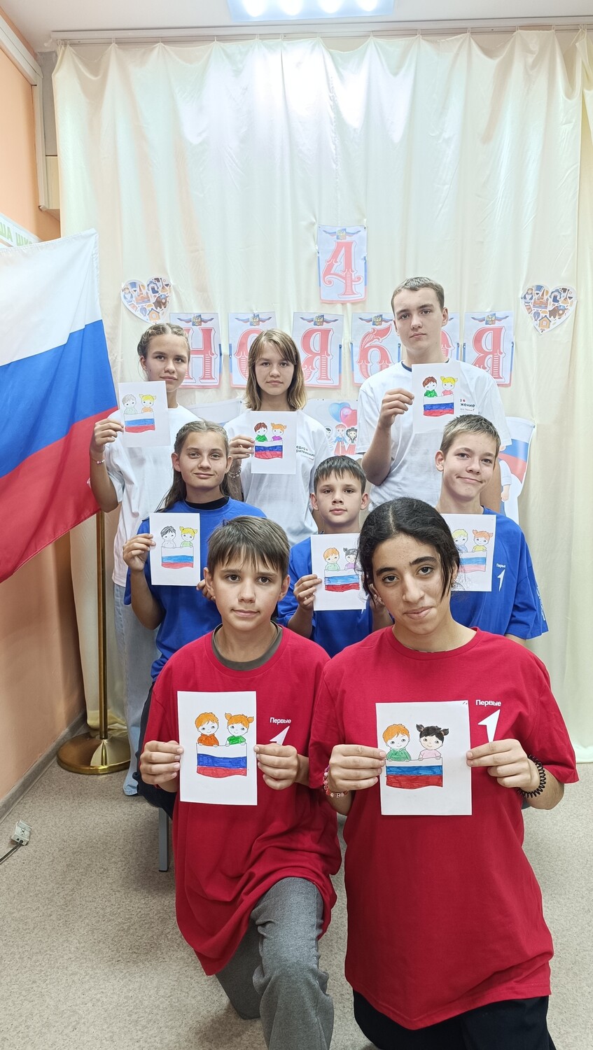 Учащиеся посмотрели видеоролик, рассказывающий об истории возникновения Дня народного единства. Ребята 1-4 классов создали ромашку единства, а 5-9 классы раскрасили открытку в цвета российского триколора.