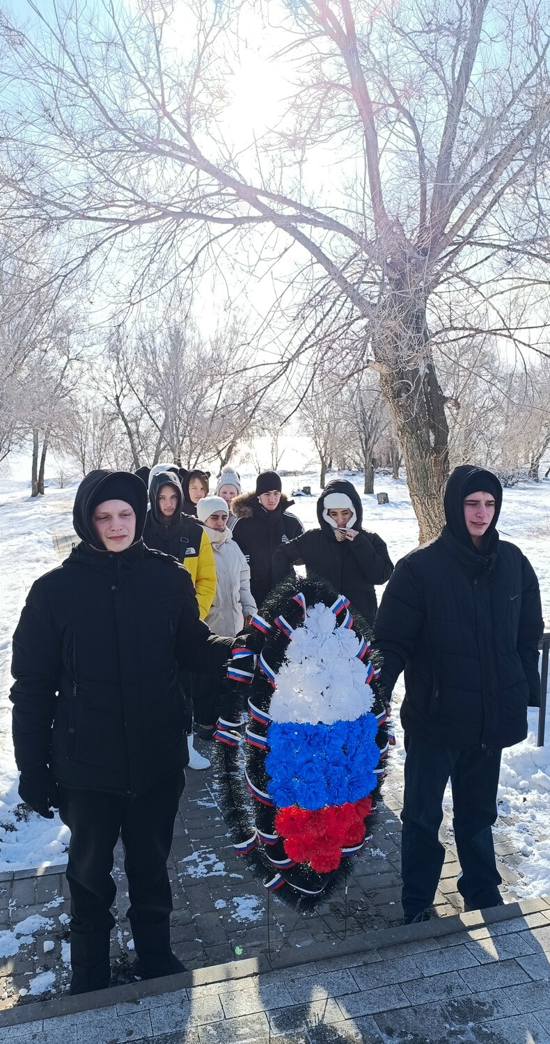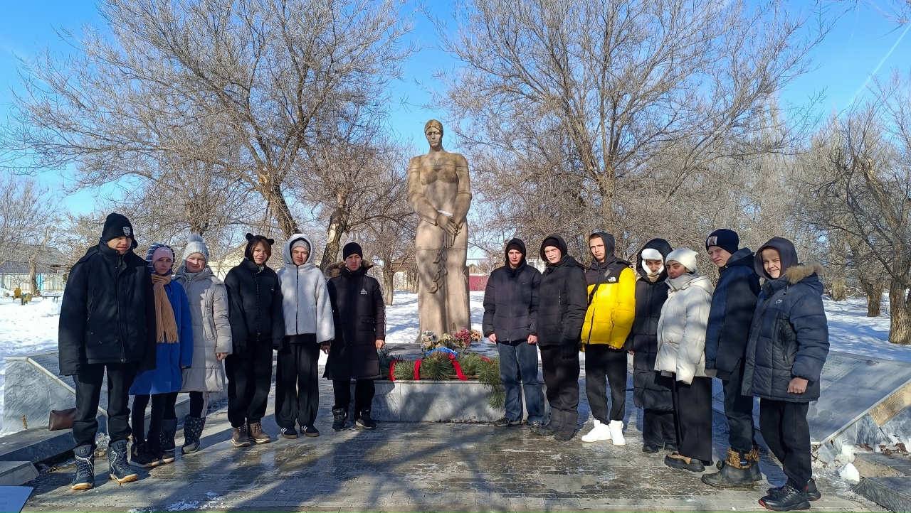 Учащиеся нашей школы приняли участие в митинге, посвящённом 83-й годовщине разгрома немецко-фашистских войск под Сталинградом. Почтив память павших героев, ребята возложили венок к братской могиле у памятника «Скорбящая мать».