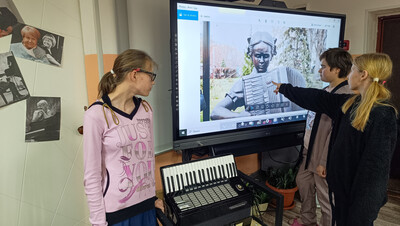 Учащиеся 5-9 классов, посмотрев видеоролик, узнали о раннем детстве Александры Николаевны, о становлении ее профессиональной карьеры, о том, как из юного любителя музыки она превратилась в настоящую музу.