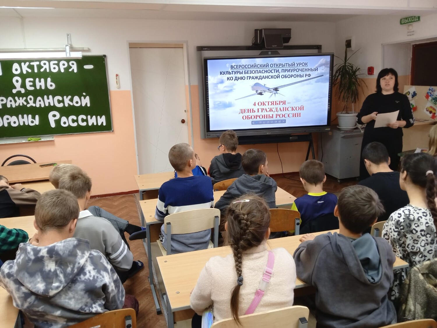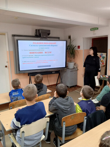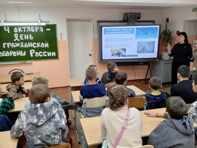 1 октября в нашей школе прошел Всероссийский открытый урок культуры безопасности, приуроченный к празднованию Дня гражданской обороны Российской Федерации. С целью знакомства ребят с основными принципами поведения в условиях чрезвычайных ситуаций учитель Калинкина О.В. в доступной форме провела беседу, продемонстрировала презентацию о порядке действий при получении сигнала оповещения "ВНИМАНИЕ ВСЕМ!". | |