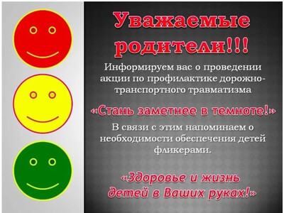 Уважаемые родители! Напоминаем вам о необходимости обеспечения детей фликерами!