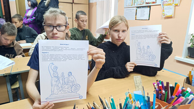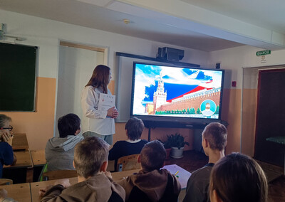 В рамках этой акции для обучающихся 4 -7 классов школы педагог - организатор Рубанова В.А. провела цифровой урок. Интерактивные герои богатырь Фадей и учитель Анна Андреевна путешествовали с ребятами по страницам нашей истории.