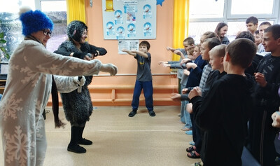 Во вторник к ребятам приехали гости: веселый Снеговик, кудрявый Барашек и долгожданная Масленица. Вместе с учащимися сказочные герои пекли блины, играли на ложках, пели весенние песни и готовили моченые яблоки. Масленица рассказала ребятам, как нужно встречать каждый день масленичной недели. Все дружным хороводом поиграли в игру "Веселый валенок". Ребята выполнили все задания гостей праздника и дружно сказали им спасибо. После программы прошло традиционное чаепитие с вкусными блинами. Мы выражаем огромную благодарность работникам МБУК "Межпоселенческий передвижной центр досуга" за прекрасный праздник. | |